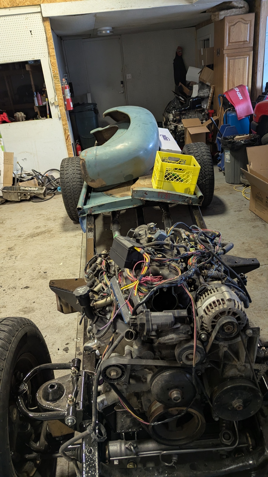 Had some time so back after the wiring. Laid the harness onto the engine and ended up cutting all the temporary tape off the harness so I could reposition the wiring to suit this build. Found some of the wiring is way too long and I am contacting Cory to see what the best option is. Also the O2 connector does not match the connector for the 2003 5.3L LS. Both are Female connectors and therefore will not plug in. Again another Cory question.